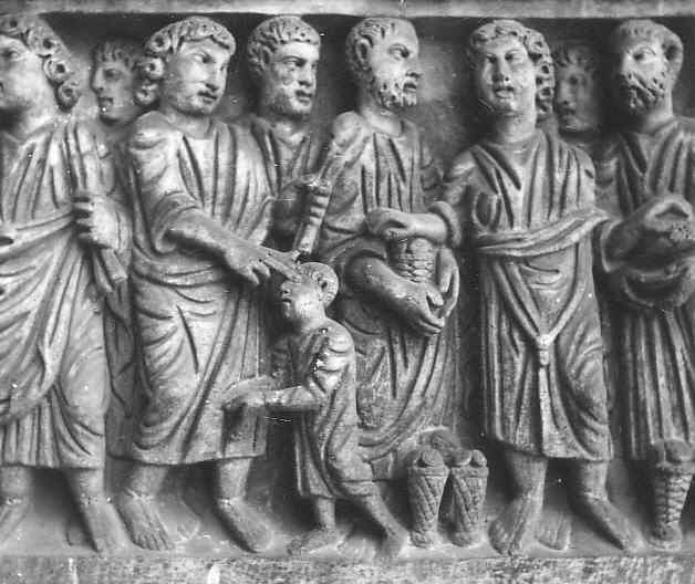 De genezing van de blindgeborene, detail van een sarcofaag, Thermenmuseum, Rome. |