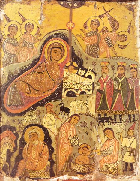 DE GEBOORTE VAN CHRISTUS - met andere afbeeldingen die daarop betrekking hebben, Sinaï - Catharinaklooster 7de eeuw; encaustiek.