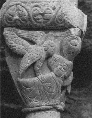 Jozef wordt door de engel van de ENE gewekt San Juan de la Peña kapiteel van een zuil (± 1200) |